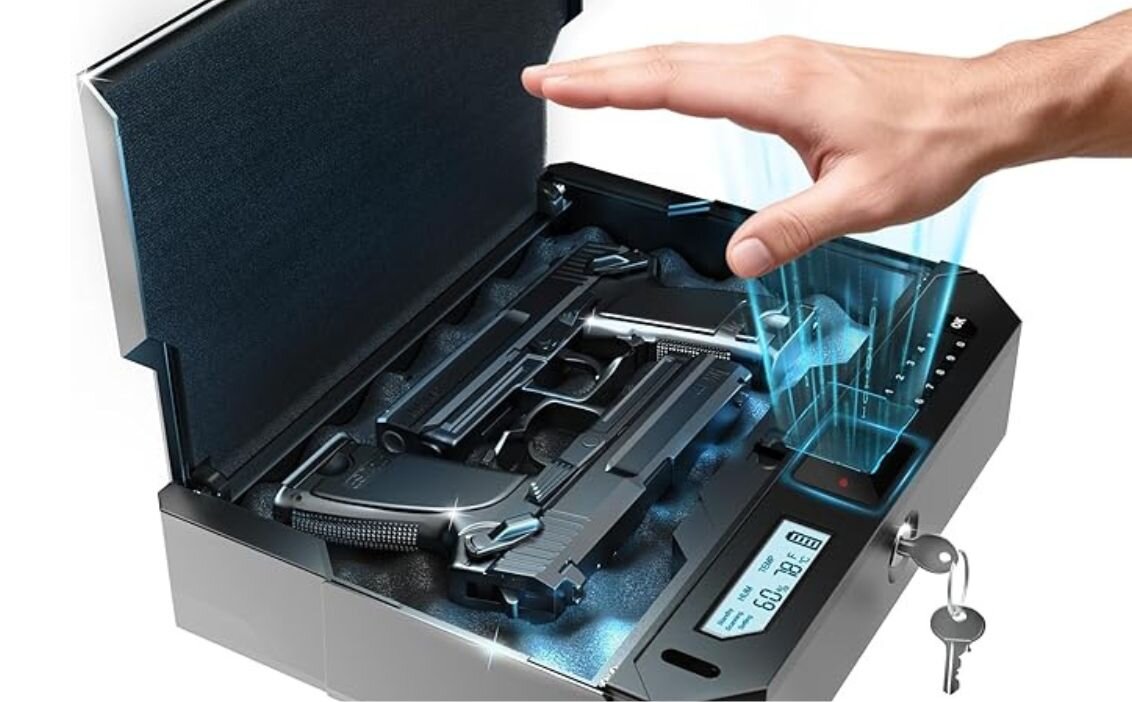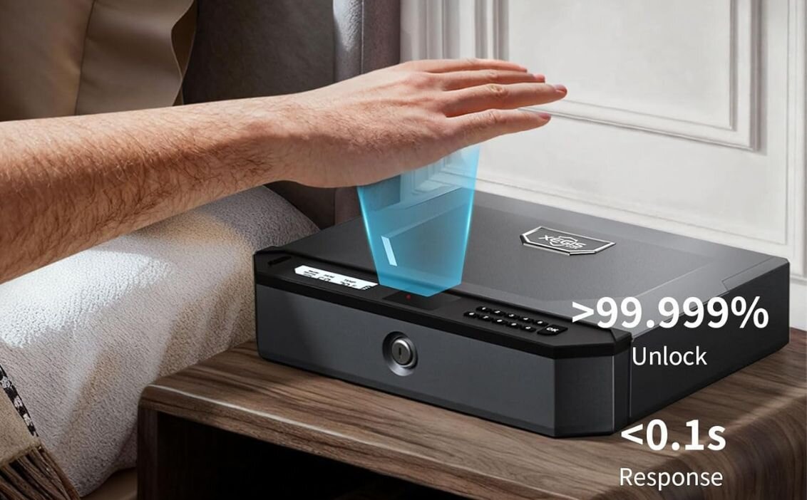 Compact & Powerful Design: Fits most nightstands, built with anti-pry steel and silent mode for stealth access.